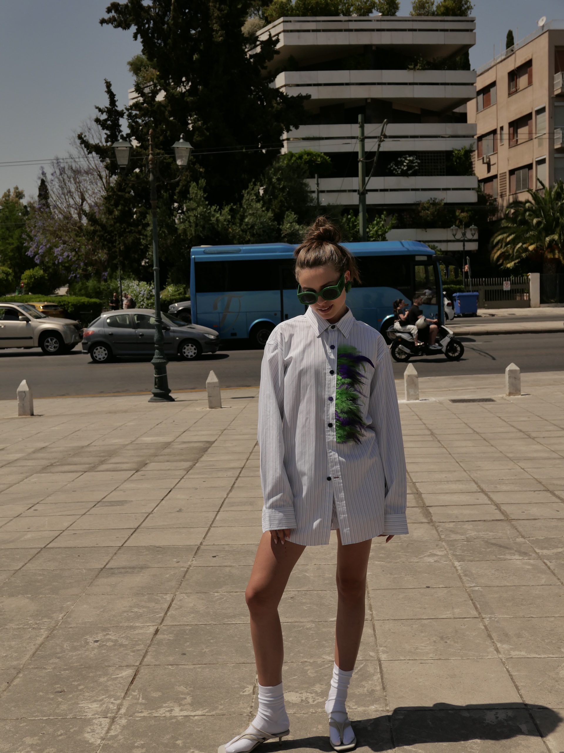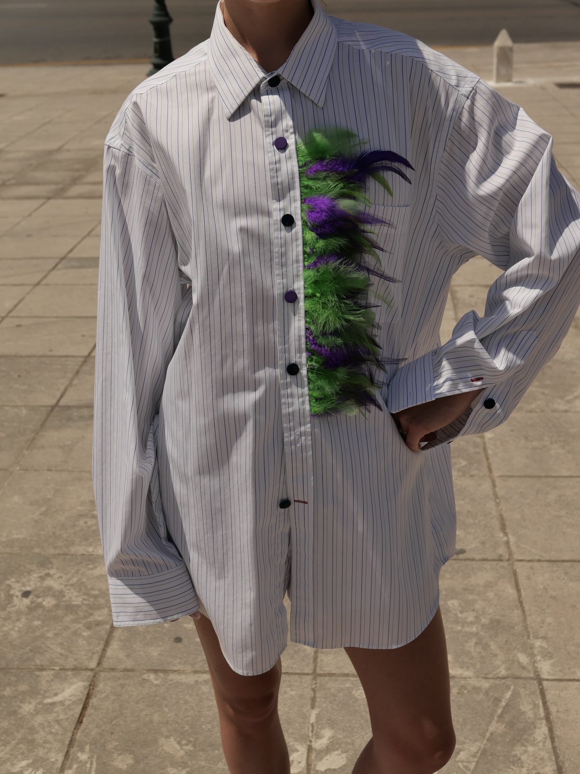 Striped White Shirt – Feathers